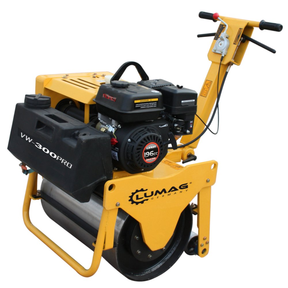 De Lumag VW-300PRO is voorzien van een continue variabele hydrostatische aandrijving. Met een werkbreedte van 60cm is de wals compact en overal inzetbaar. De maximale werksnelheid vooruit is 0-2.1 km / h en achteruit 0-1.4 km / h. De machine is voorzien van een kleine zijdelingse overhang. Dit maakt optimale verdichting tot muren of stoepranden mogelijk. De schrapers voor en achter houden de wals altijd goed schoon.